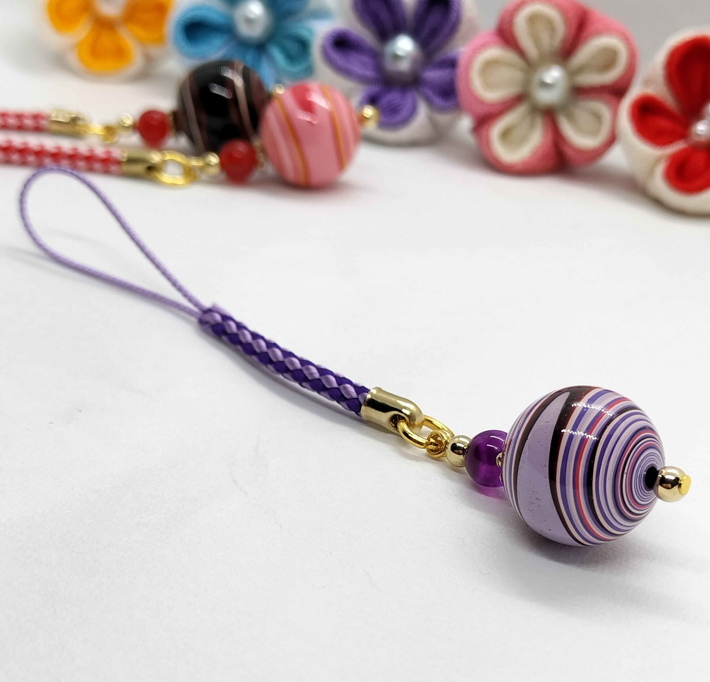 堆朱玉  (紫) 根付ストラップ 送料無料