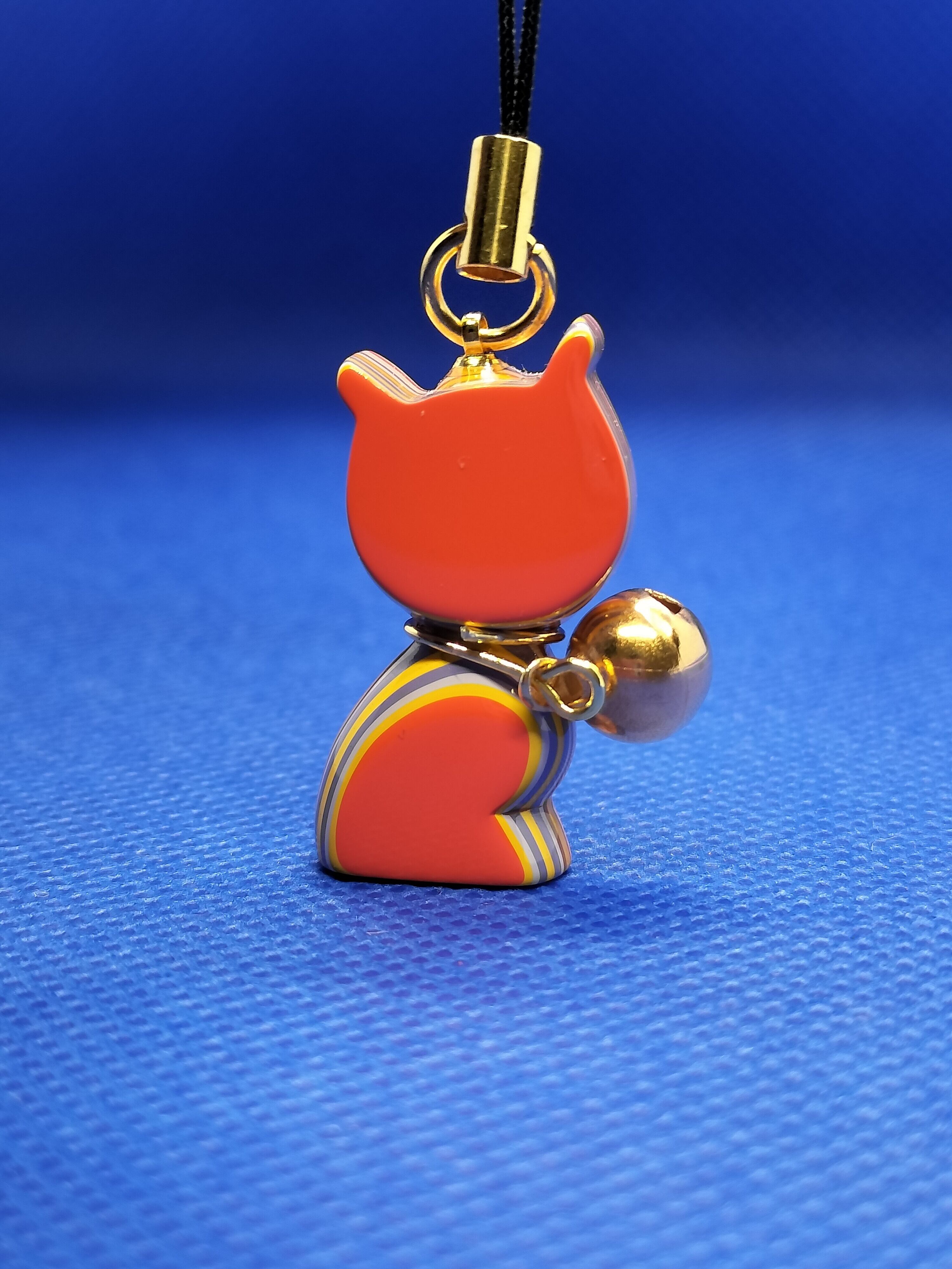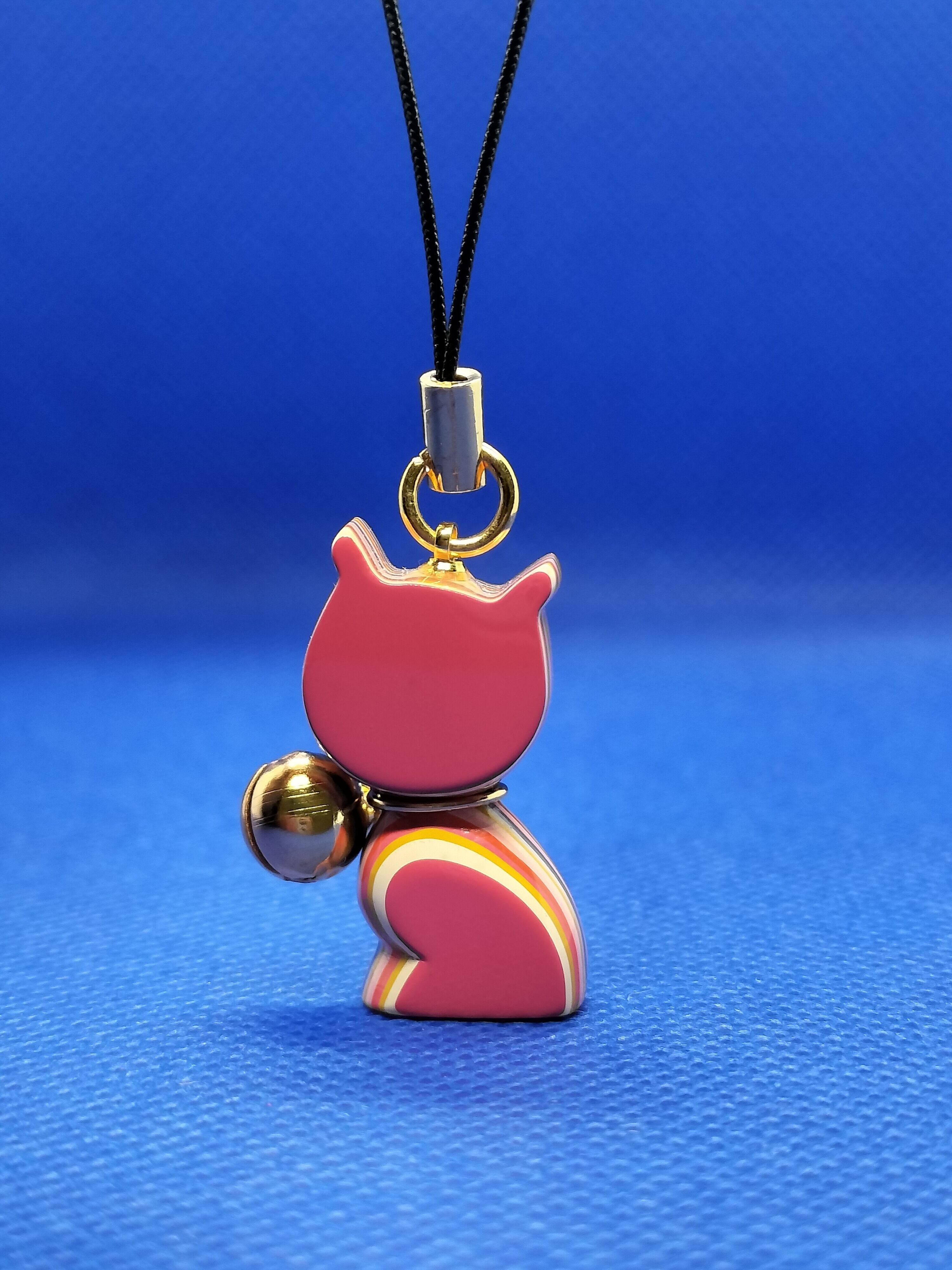堆朱 ねこストラップはその愛らしいデザインと美しいカラーリングが特徴です。