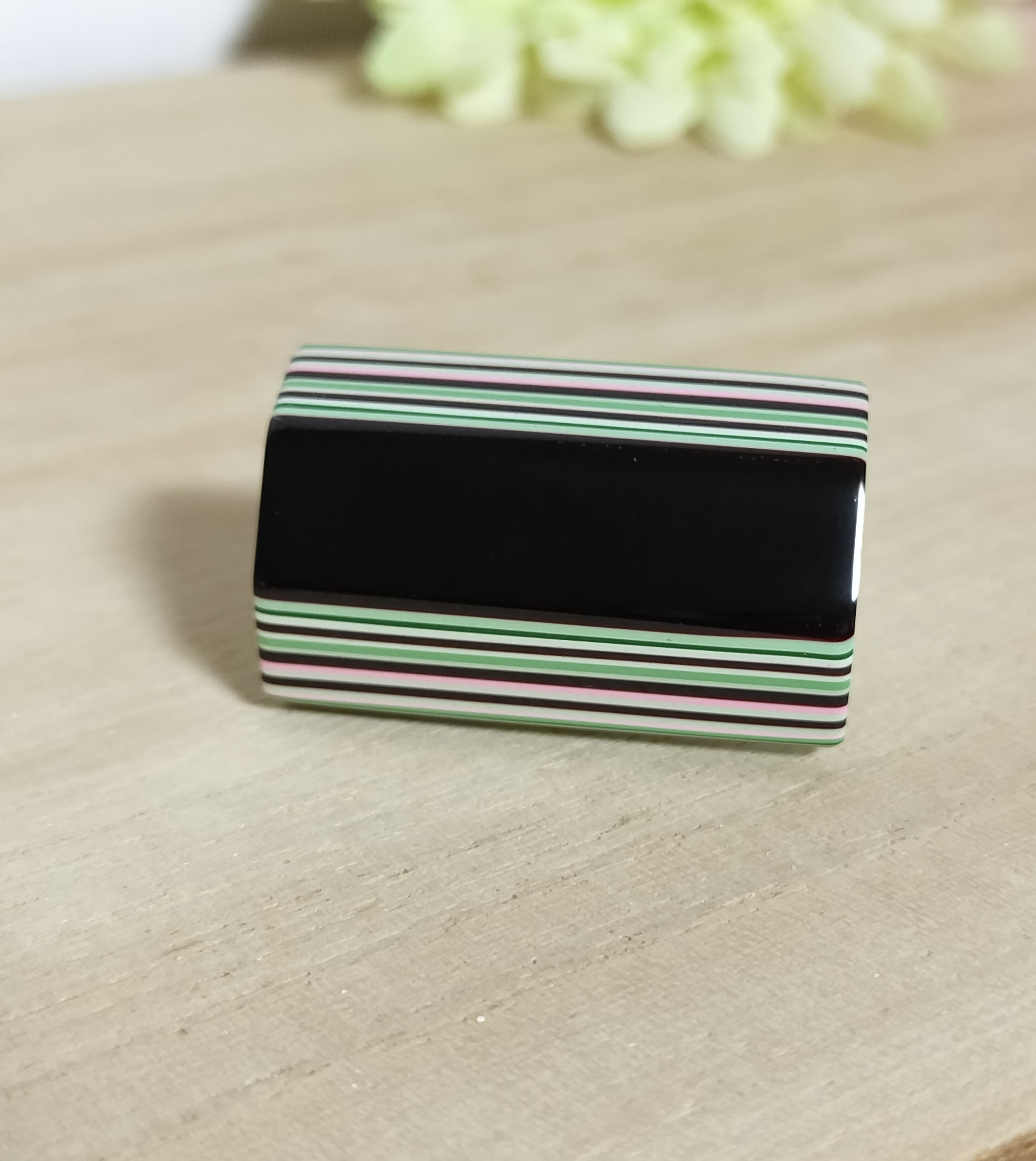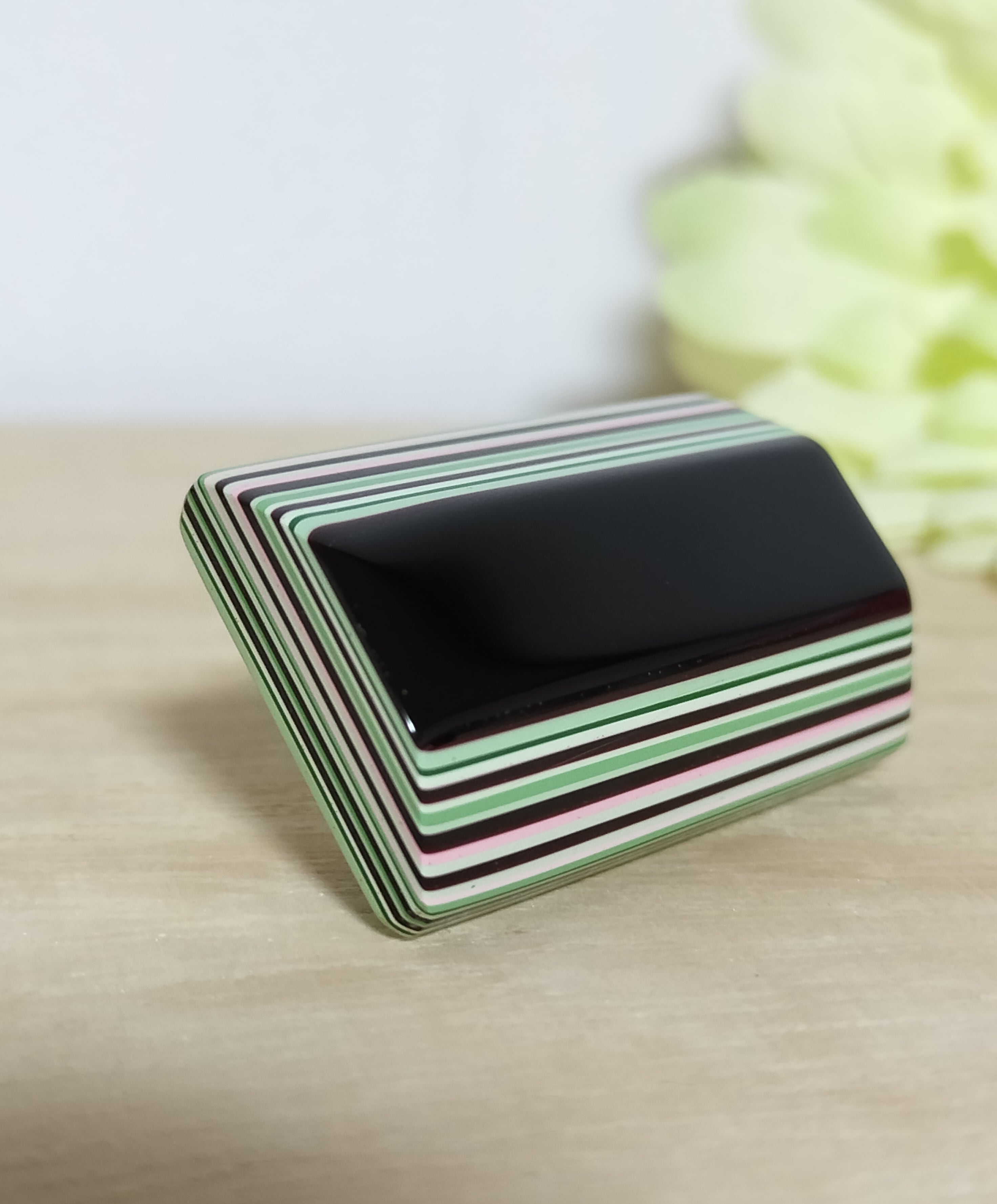 堆朱 帯留 黒緑